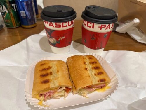 おはようございます!釜山2日目の2月8日です。 朝は8時半ごろに起きまして、プサンビジネスホテルの1階に入ってるカフェ「CAFFE PASCUCCI」で朝飯を買って来て、ホテルの部屋で食べますよ^^ パニーニを買って来ましたwww 前にここのパニーニを2種類食…